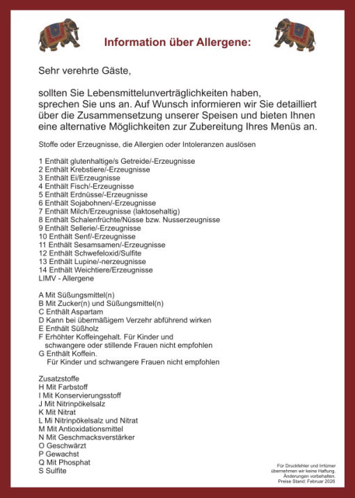 Täglich geöffnet: 11:00 - 14:00 Uhrund 17:00 - 23:00 UhrSonn- und Feirtage: 11:00 - 23:00 Uhr